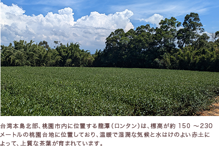19世紀後半に誕生した、世界的に有名な烏龍茶の銘茶、東方美人。その歴史的主要生産地として知られる桃竹苗(桃園・新竹・苗栗)エリアの中でも、桃園市南西部・龍潭の丘陵地帯に広がる大北坑茶区は、高品質な茶葉の栽培で有名です。